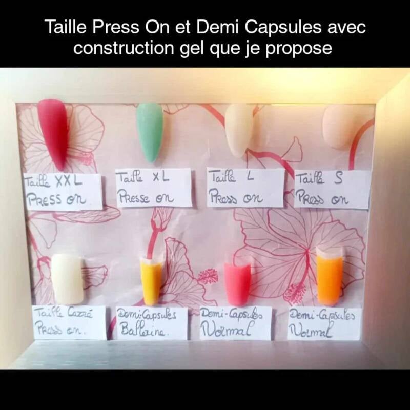 Bonjour , je vous propose une pose avec des demi-capsules et remplissage au gel